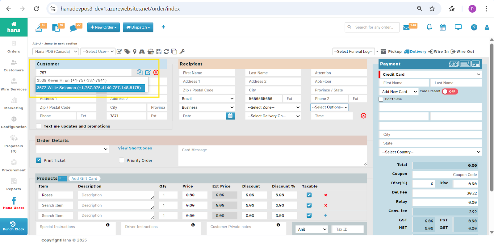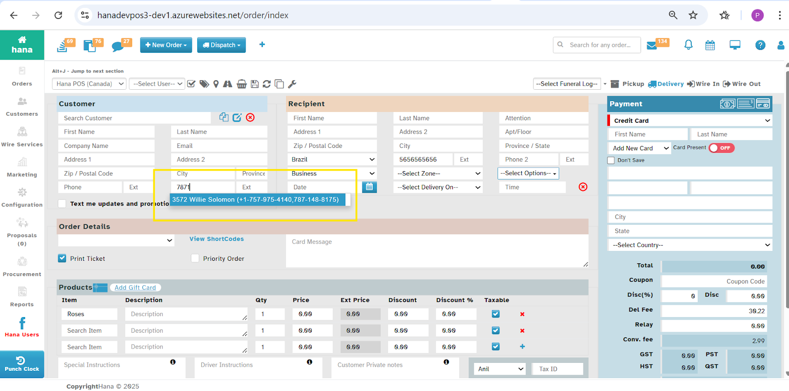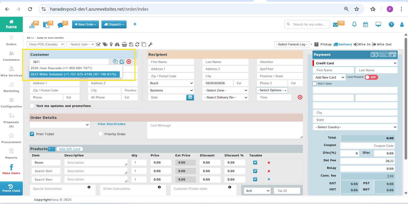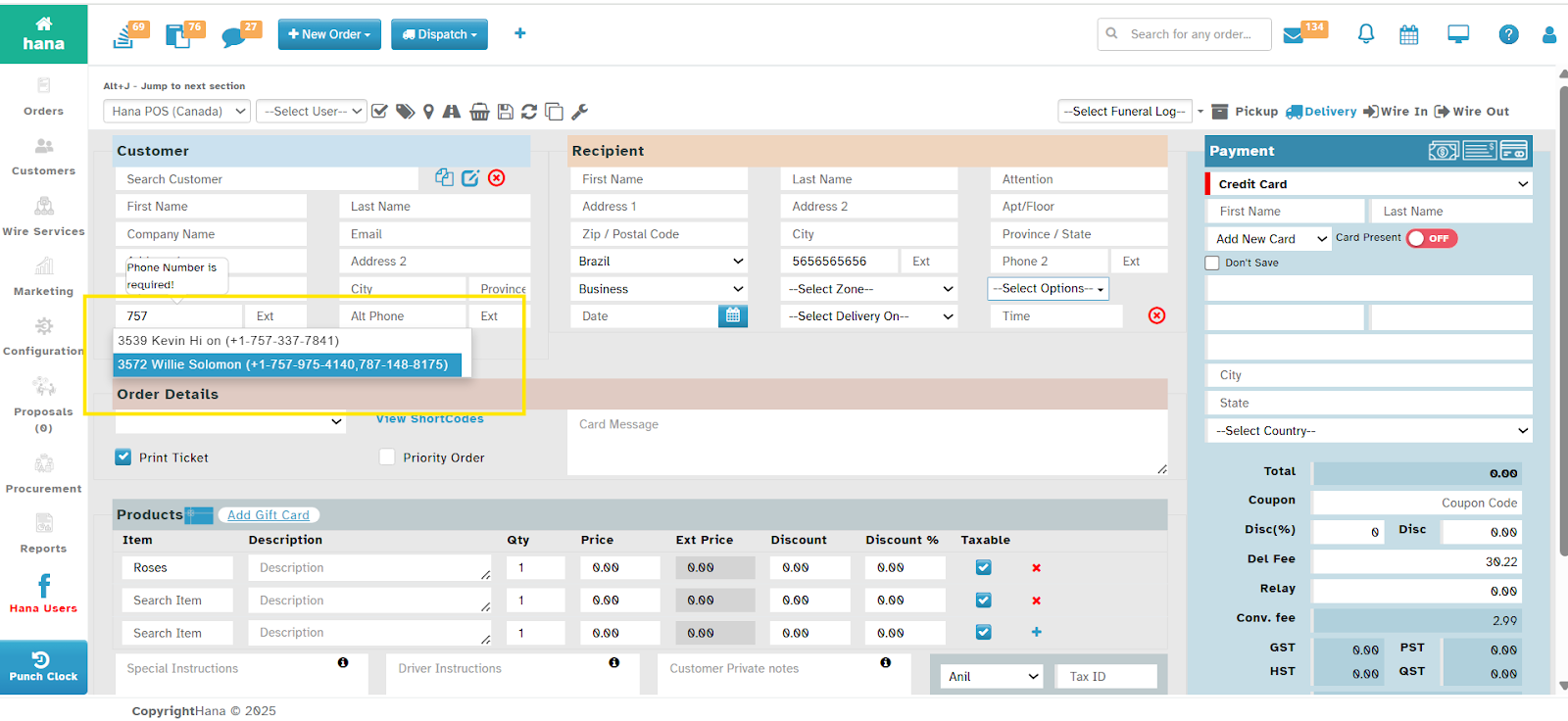 This will allow the Florist to search the customer with their Primary Phone Number and Alternate Phone Number in Phone Order Screen