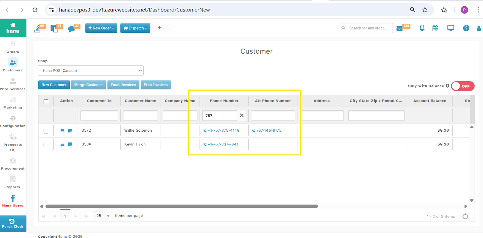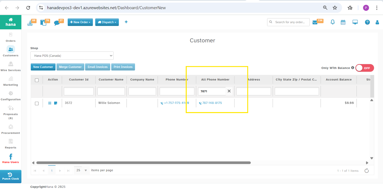 Customer Management - Searching with Alt Phone Number