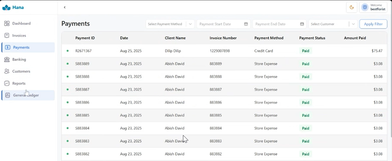 Filter by Date Range: View payments within a specific period, such as last week or last month.