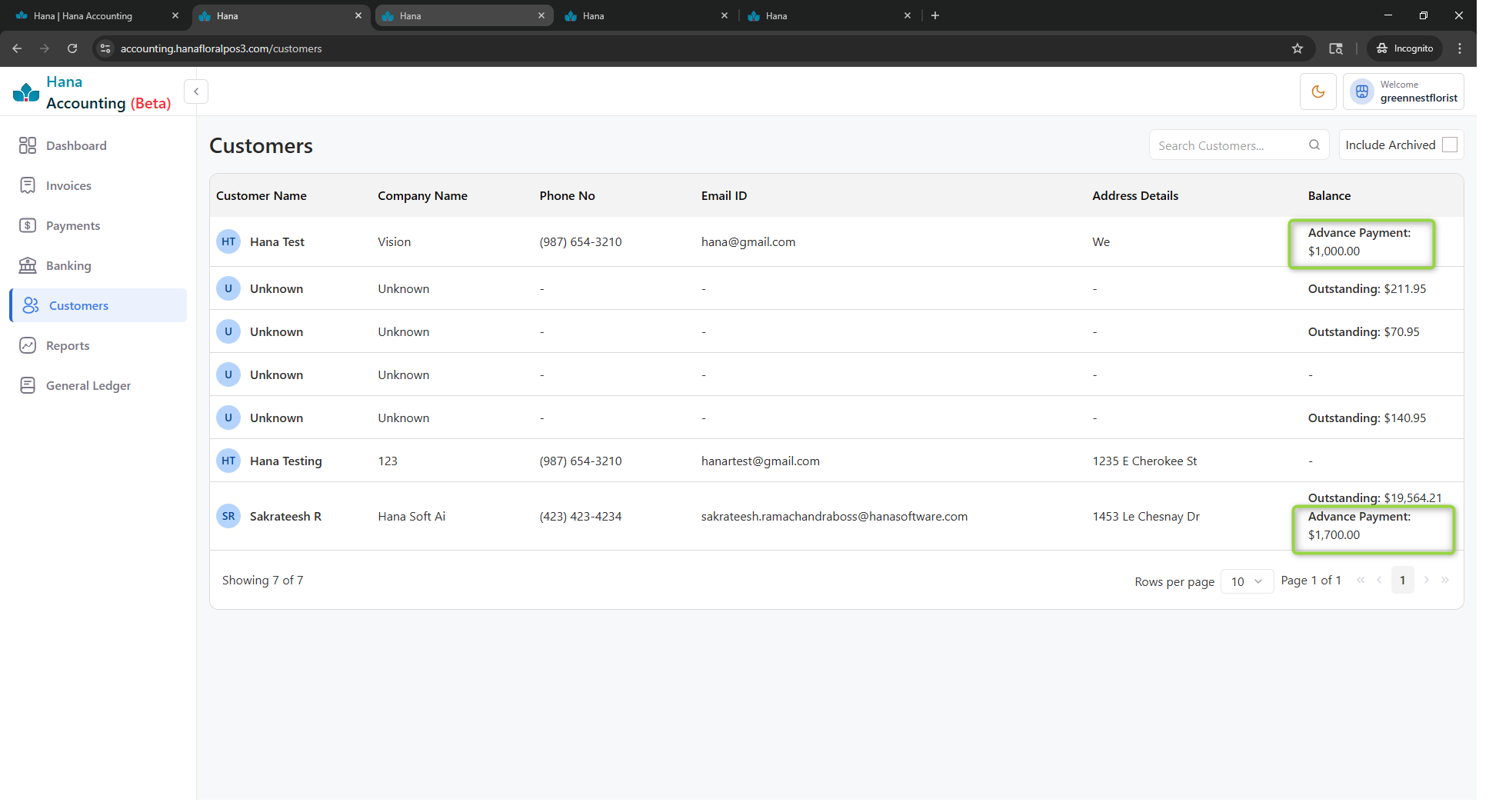 - The system automatically applies the available advance balance from the Hana Advance Payment Account.